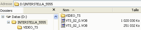 Comme vous pouvez le voir ci-dessous, nous avons 2 fichiers VOB: