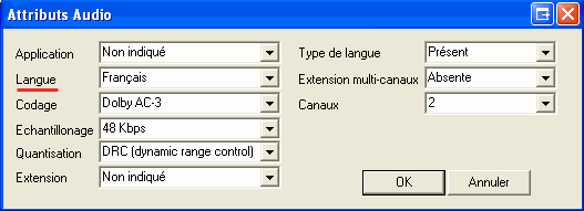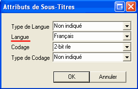 Pour y remédier, double-cliquez sur le flux audio puis sur celui de sous-titrage afin d'obtenir la boîte de dialogue suivante: