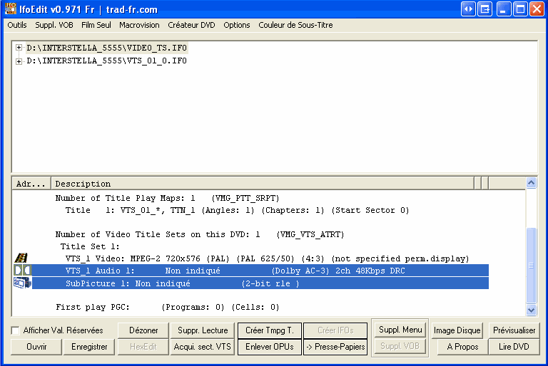 IfoEdit examine maintenant le ou les fichiers VOB et collecte toutes les informations relatives à l'IFO: