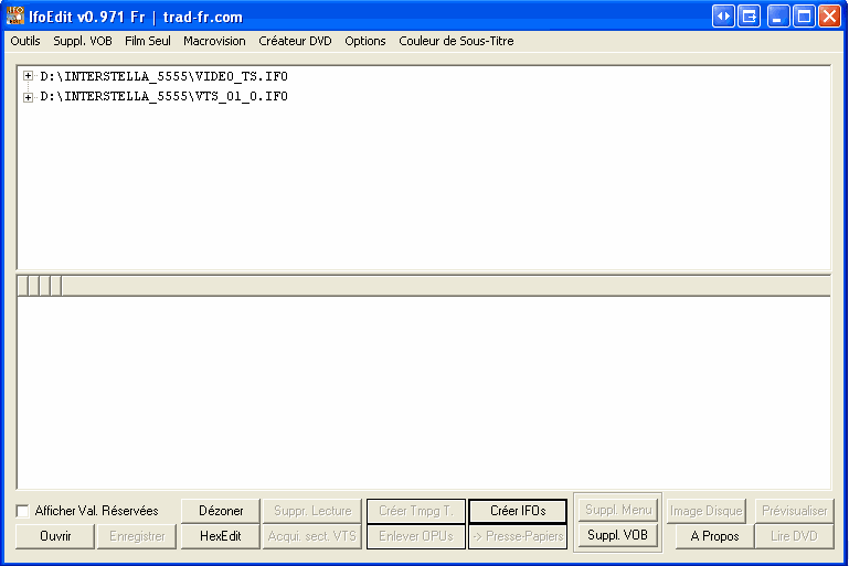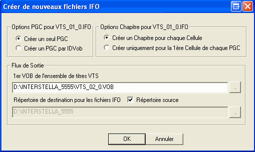 Ce bouton permet de créer de nouveaux fichiers IFO complets pour des fichiers VOB dont voud n'auriez pas les fichiers IFO d'origine sous la main.