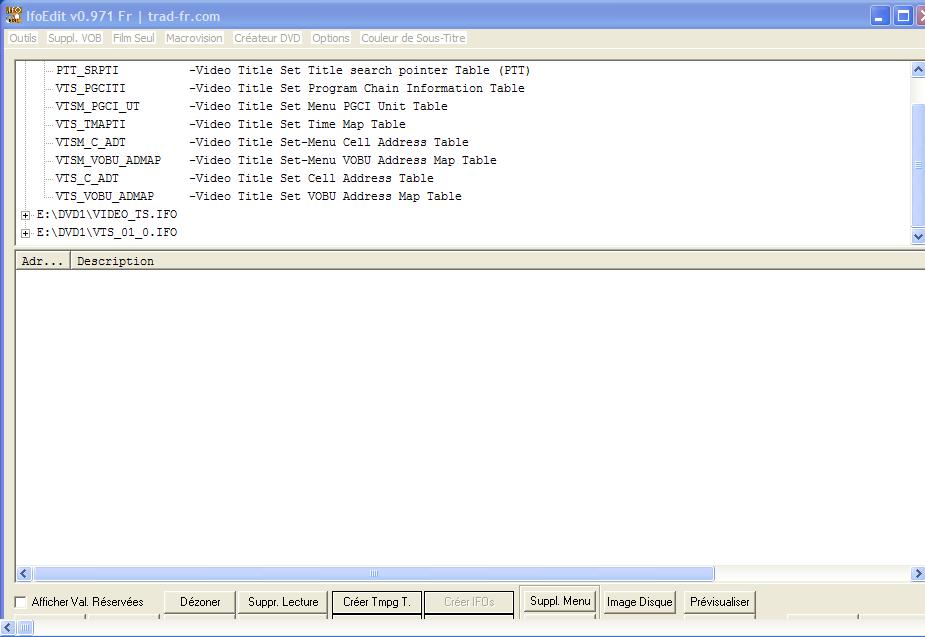 Démarrez IfoEdit à nouveau, et ouvrez le nouveau fichier VIDEO_TS.IFO et cliquez