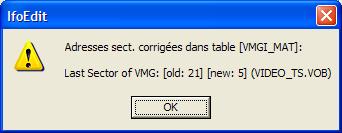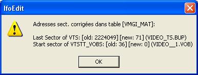 Fermez IfoEdit, redémarrez le, et ouvrez le nouveau fichier VIDEO_TS.IFO créé et appuyez sur 'Acqui.sect.VTS':