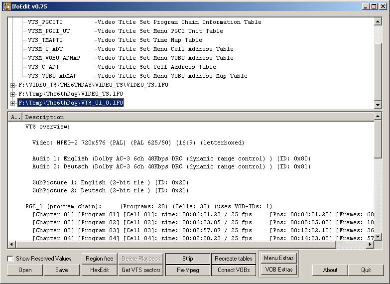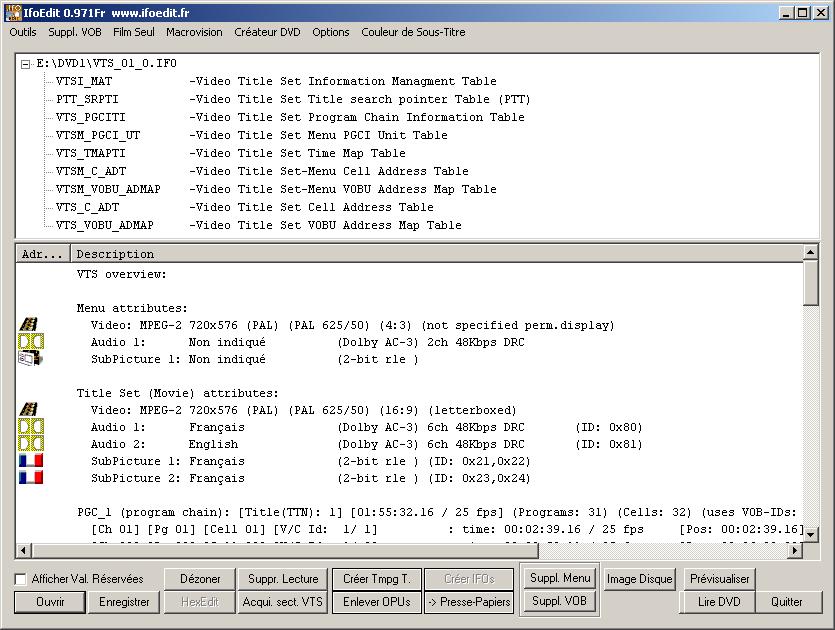 IfoEdit, et ouvrez le fichier IFO des VOBs de votre film principal. Dans ce