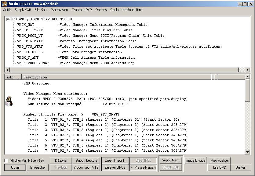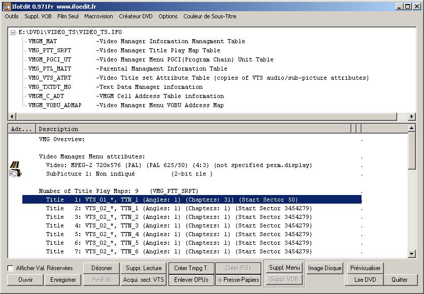 Ouvrez n'importe quel fichier IFO de ce rip avec IfoEdit. Je préfère ouvrir 'VIDEO_TS.IFO':