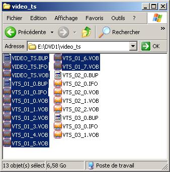 C'est tout. Pour avoir une copie fonctionnelle du DVD, Vous devez simplement copier les fichier surlignés:
