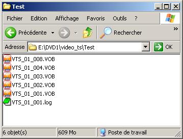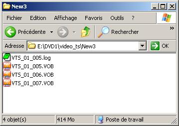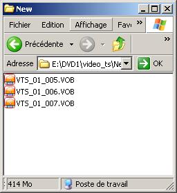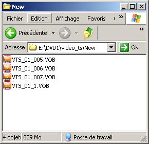 Donc déplacez les fichiers VTS_01_005.VOB - VTS_01_007.VOB dans un nouveau répertoire vide. (Vous allez bientôt comprendre pourquoi)
