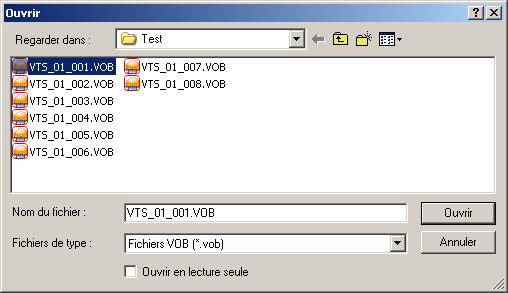 Nous ouvrirons le fichier VTS_01_001.VOB: