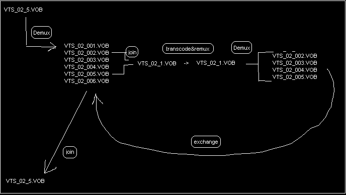 Pour transcoder une partie d'un couple de titres DVD ou d'un fichier VOB, l'idée est de démuxer/découper le fichier VOB ou le couple de titres en IDs de cellule d'abord.