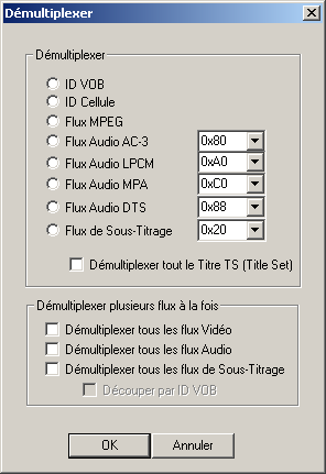 Cliquez sur le bouton 'Demux', et la boite de dialogue suivante apparaitra:
