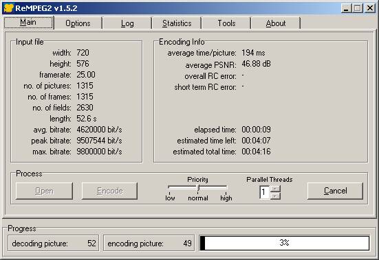 Maintenant vous avez simplement besoin d'ouvrir ce fichier VOB dans ReMPEG2, et démarrer le processus de transcodage.