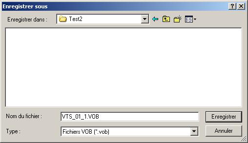 Une seconde boite de dialogue apparait, où vous devez sélectionner un répertoire de destination pour le fichier VOB remultiplexé