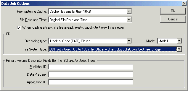 changez le type de système de fichier en 'UDF with Joilet':