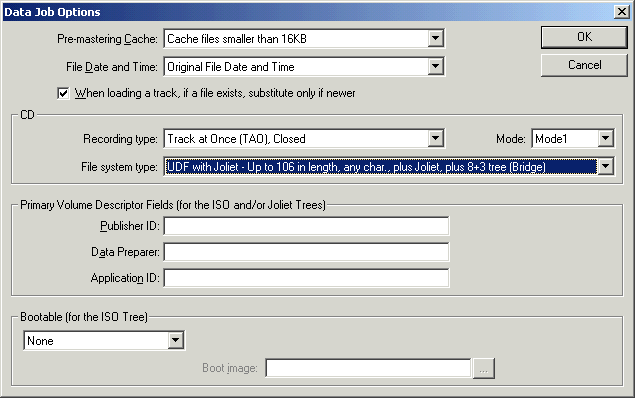 changez le type de système de fichier en 'UDF with Joilet':