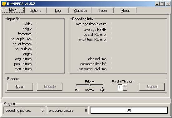 Maintenant démarrez ReMPEG2 v1.5.2. Il ressemblera à ça: