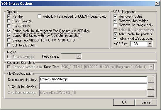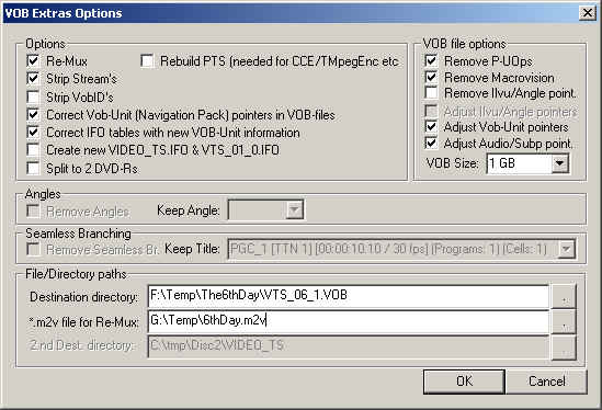 ou choisissez le menu 'VOB-Extras -> Remultiplexer .m2v', pour obtenir la boite de dialogue suivante: