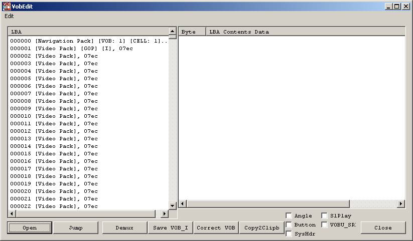 Maintenant ouvrez le premier fichier VOb de ce répertoire avec VobEdit.