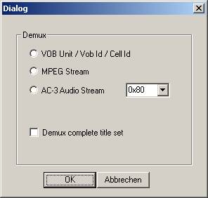 Cliquez sur le bouton 'Demux', et la boite de dialogue suivante apparaitra: