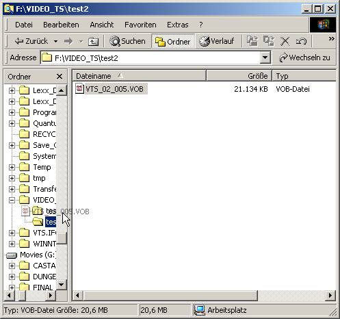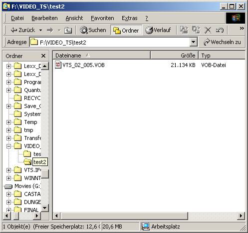 Et maintenant déplacez le fichier VTS_02_005.VOB transcodé dans ce répertoire: