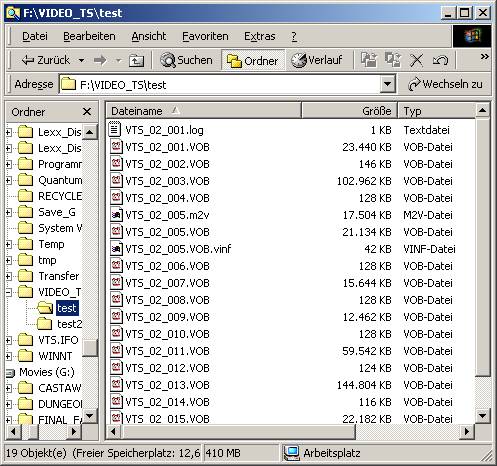 Puis nous pouvons aisément accéder/éditer/transcoder une seule cellule ou avec n'importe quel utilitaire préféré. J'utilise ReMPEG2 pour transcoder les films, donc simplement transcoder la Cellule démultiplexée dans notre cas. Après le fichier m2v transcodé peut être remultiplexé à l'intérieur de la Cellule découpée avec VobEdit.