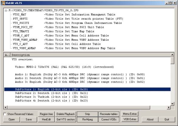 Si ils lisent votre film, alors demarrez IfoEdit à nouveau, chargez chaque fichier IFO, et cliquez sur le bouton 'Acqui.sect.VTS'.
