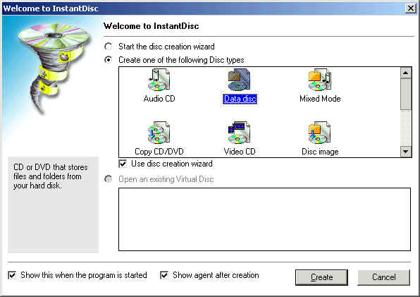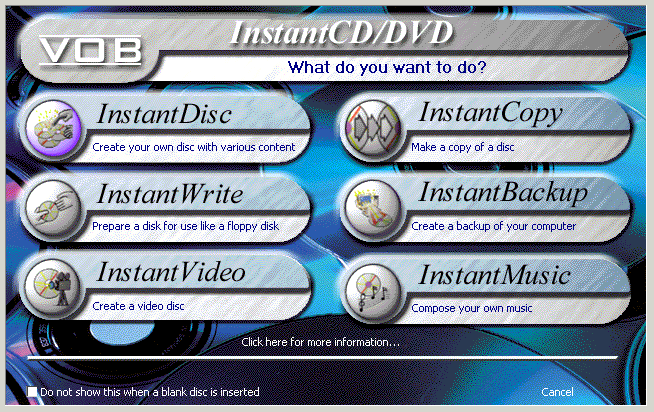 Après avoir démarré VOB Instant, Sélectionnez l'option 'Instant Disc':