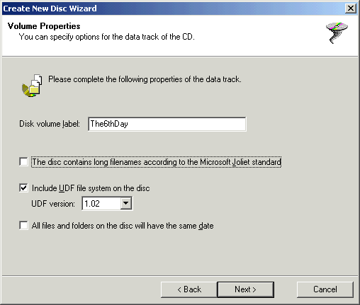 Entrez le nom que le DVD doit avoir, et décochez l'option joilet: