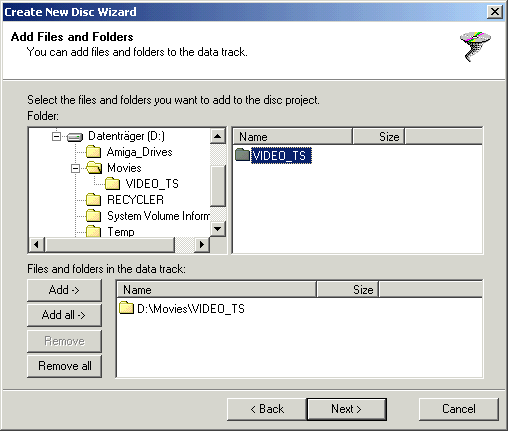 Ajoutez votre répertoire VIDEO_TS dans le projet: